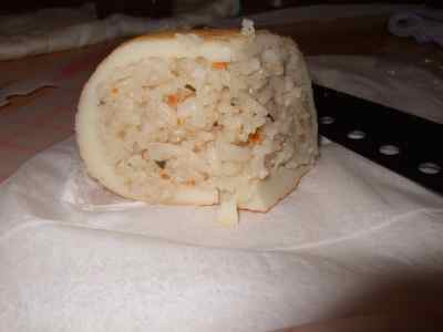 中に、こちらで言う、コショウ?のような隠し味が使われていて、それが駄目な人は、苦手かも?(母は駄目でした。)私や、叔母は気に入って、おいしくいただきました。右の写真が断面図です。