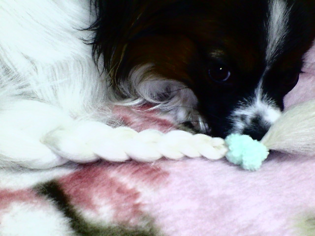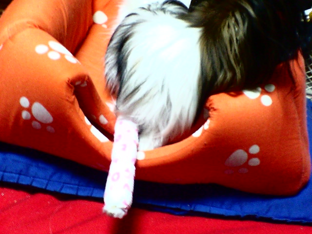 遊び心から、そら君の尻尾を編み編み・・・・・・・・・・・・・・・