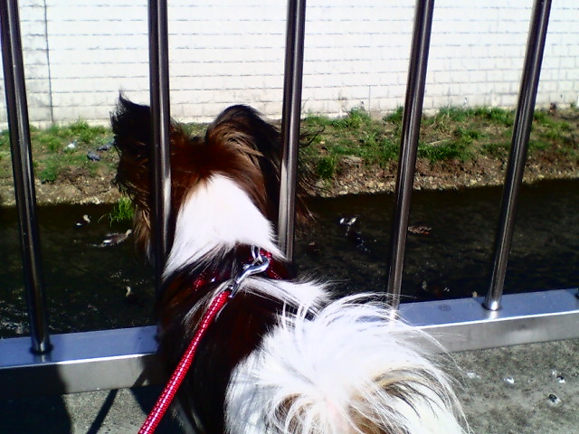 と鳴くカルガモに見とれているそら君なのです。