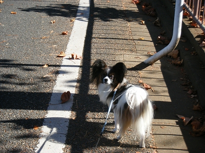 と、お友達作戦でなだめすかして、何とかリードをして、お散歩へ(疲れる(´ヘ`;))