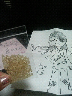 ハートネネちゃんから、私の似顔絵とお家で作ったお米を♪